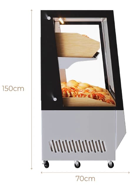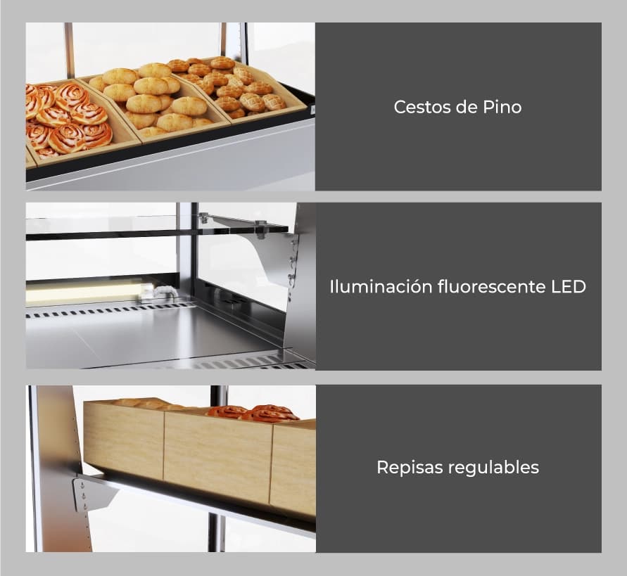 ¡Descubre nuestra exclusiva vitrina para panes, fabricada con acero inoxidable de la más alta calidad! Esta vitrina es la combinación perfecta de estilo y funcionalidad, ofreciendo una forma elegante y eficiente de exhibir tus panes frescos y recién horneados. Su diseño con cristal plano proporciona una vista clara y atractiva de tus productos, permitiendo que tus clientes aprecien cada detalle mientras disfrutan de la frescura de tus delicias.